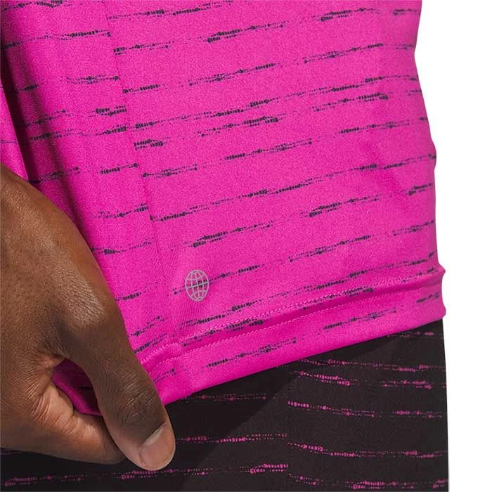 Look sharp and play sharper. This adidas golf polo shirt is made of a breathable, moisture-wicking fabric to help keep you dry during those high-pressure putts and long walks on the course. It has a subtle, linear allover print and a zip collar to give it a modern vibe.